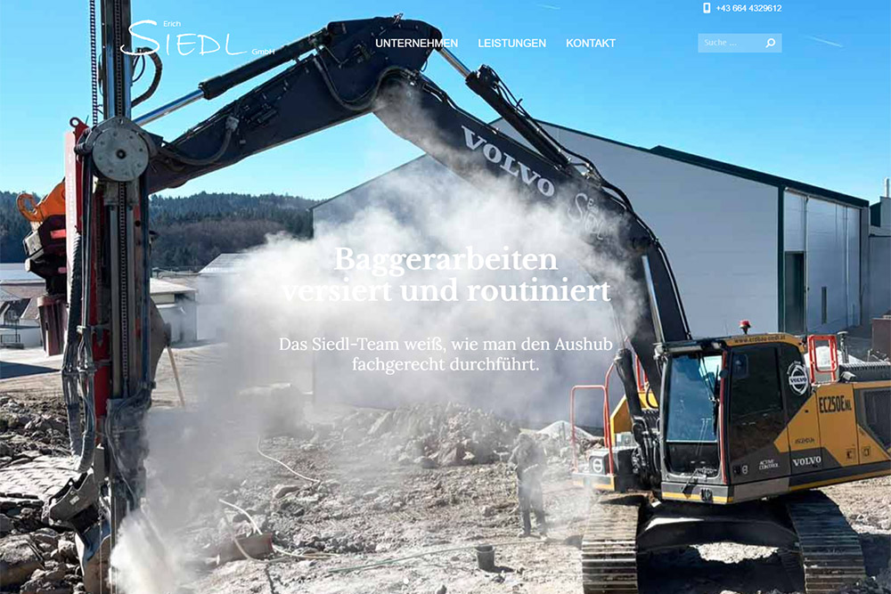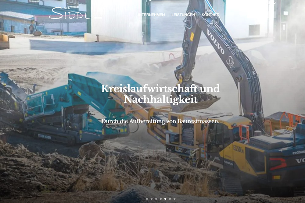 Seit 2025 ist Erdbau Siedl auch zertifizierter CE Baumassen-Recycling-Betrieb, d.h. nachhaltiger Umgang mit den Rohstoffen, durch die Aufbereitung von mineralischen Bauabfällen zu Sekundärrohstoffen, die anschließend wieder beim Straßen-, Hoch- und Tiefbau zum Einsatz kommen. Mit einer mobilen Abfallbehandlungsanlage (Backenbrecher und Grobstücksiebanlage genauer gesagt) wird Kreislaufwirtschaft zum Thema Nr. 1 auf jeder Baustelle. art.waldsoft kümmerte sich um das Upgrade der Website.